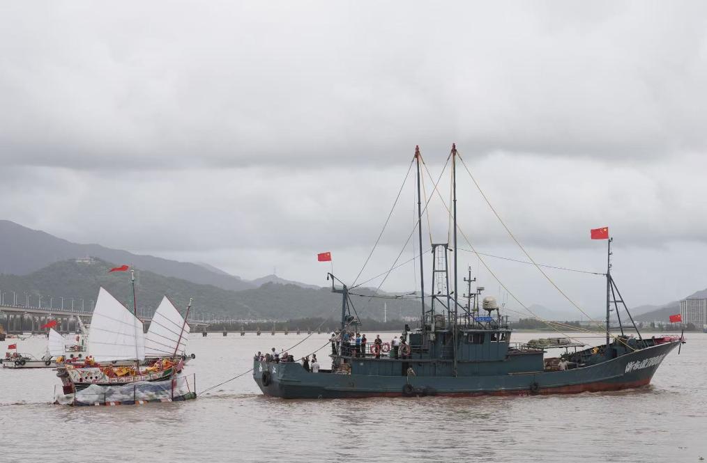 臨近下午5點,“送大暑船”行至江邊,經過簡潔的祭海儀式,在鼓樂聲中順利下水,然后由漁船拖動,前往東海。