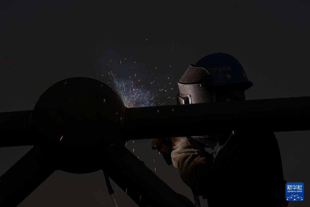 10月14日,建設者在衢麗鐵路東西巖站站房候車廳鋼網架上進行焊接作業。