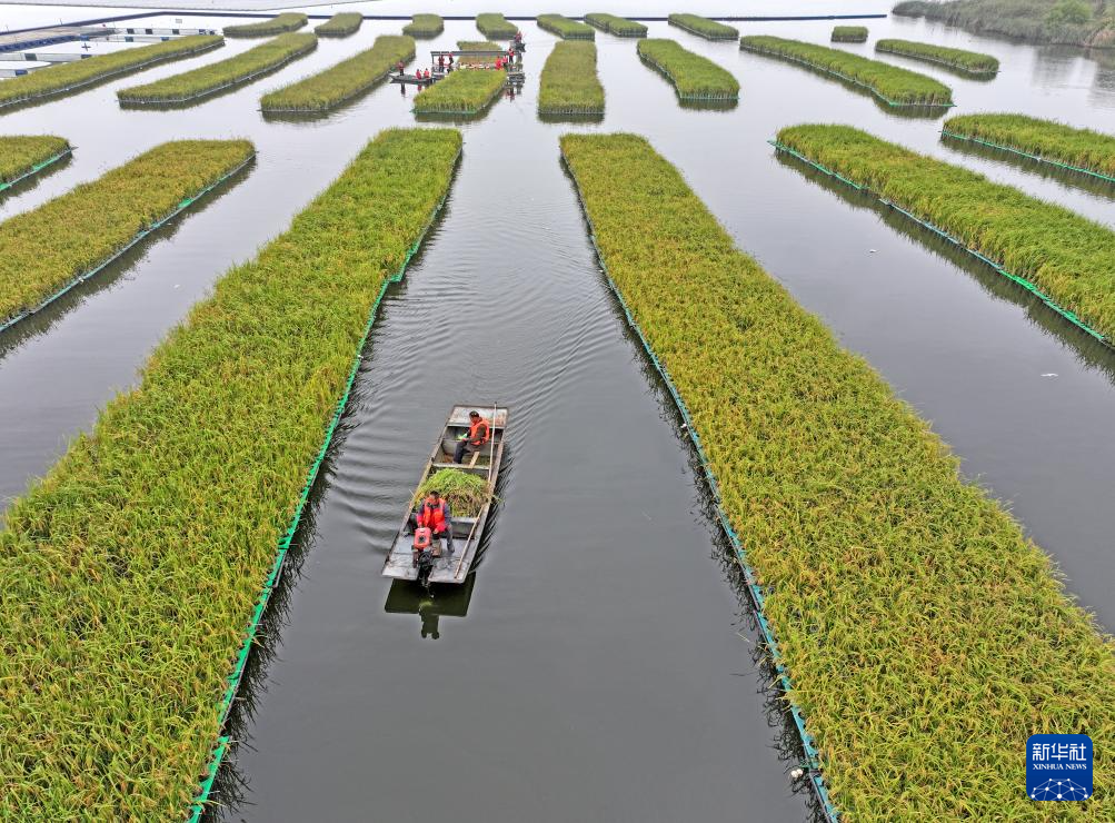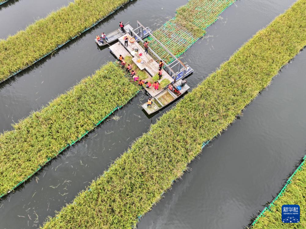 近日,安徽省淮南市鳳臺縣顧橋鎮采煤沉陷區50畝漂浮式水稻迎來豐收。當地積極探索采煤沉陷區綜合治理開發利用,在采煤沉陷區推行水面漂浮水稻種植、水下網箱養魚、水上光伏電站等多種發展模式,科學利用好采煤沉陷區。
