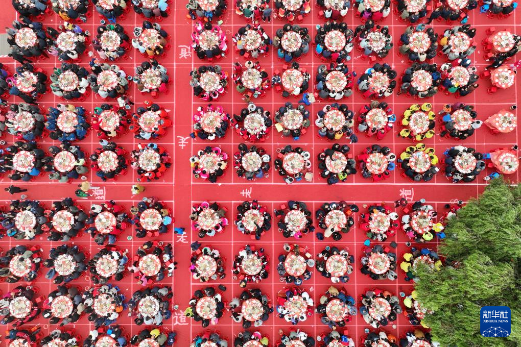 10月19日,人們在江蘇省淮安市洪澤區漁人灣浴場參加品蟹宴(無人機照片)。