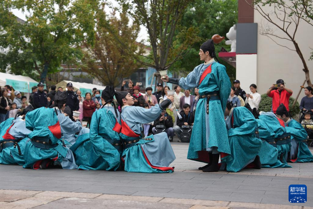 10月26日,浙江歌舞劇院演員在新市古鎮表演舞蹈《鹿鳴宴》。