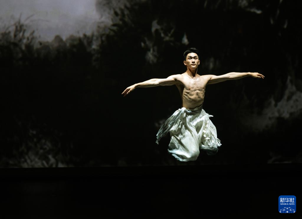 10月25日晚,北京舞蹈學院青年舞團演員在新市古鎮專場演出中表演《水墨孤鶴》。